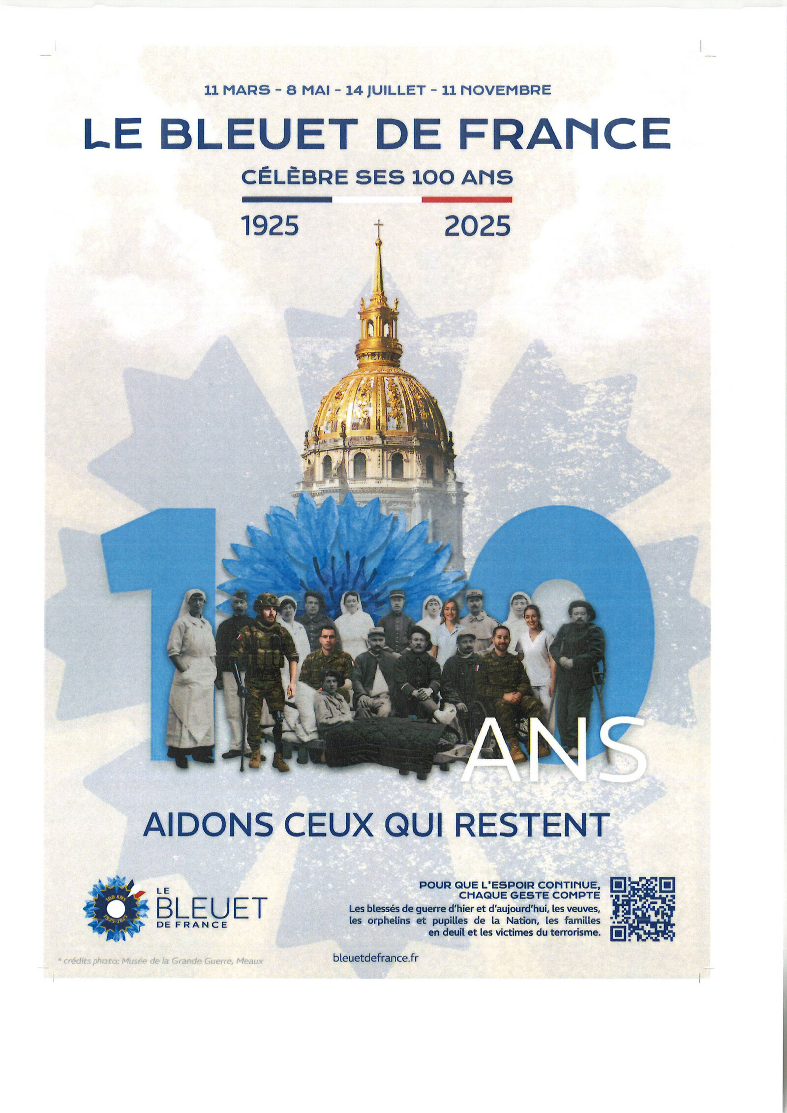 Le Bleuet de France assure depuis la fin de la Première Guerre Mondiale le soutien psychologique, matériel et financier des hommes et femmes qui ont risqué leur vie pour la France, des victimes d’actes terroristes, des soldats blessés en opération extérieure (OPEX), des anciens combattants, des orphelins et des veuves de guerre.
